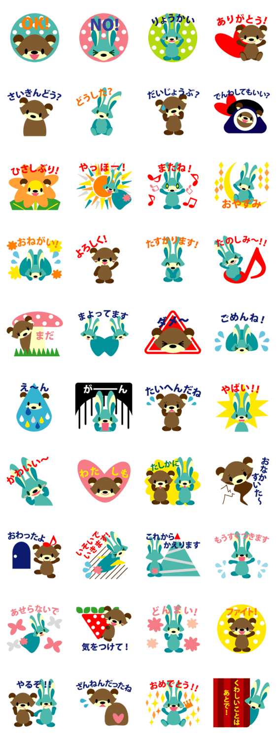 兎のワールと熊のボボウのほっこり優しいスタンプです。
