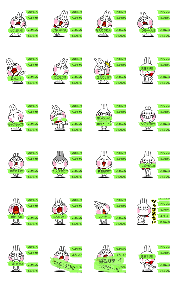 ウサギ魂シリーズ第9弾はふきだしの突っ込みバージョンだ!ウサギ魂がふきだしをチョイスしてあなたの気持ちを伝えるよ!色々な会話で関西弁のようにズバッと突っ込もう!