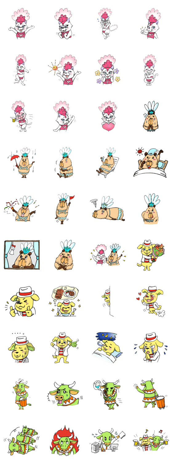 サンバが好きな、ゆかいな動物たちのスタンプあなたのトークがサンバカーニバルに