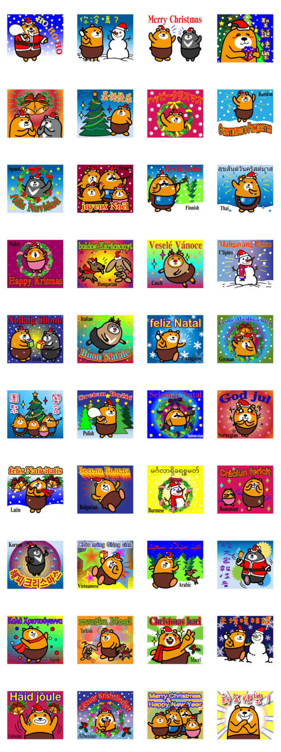 | スタンプ説明 | Liu-Lang Bear has a wandering soul, starting his journey.When he comes to knock your door, please give him a cup of honey milk tea as well.Merry Christmas! |