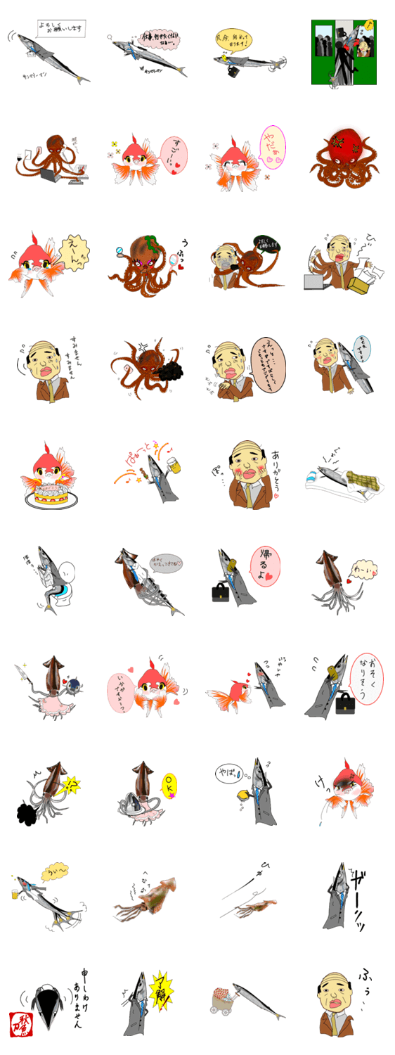 会社にはタコの女部長、新入社員のぶりっこ金魚、ちょっとダメなオヤジが、、。 いろいろ日々大変ですが、 愛するかわいいイカの奥さんのためにも毎日頑張ります。