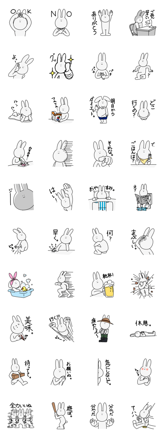 いつも真顔なうさぎです。どんな感情をしていても顔色ひとつも変えず、体で表現をします。少しツッコミたくなるような真顔うさぎと一緒に日常生活を過ごそう♪