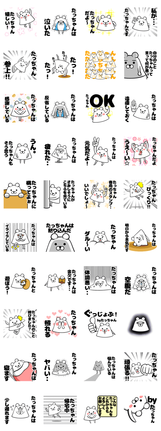 『あだ名専用』シリーズ第2弾!!たっちゃんが使う用のスタンプです。田辺、田中、達也、高橋、田村、武田、高田さんなどの名字や名前に『た』が付く方にオススメです♪