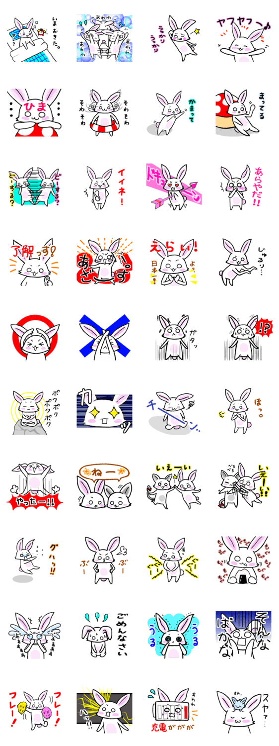 ちょっと変わり者のさっぴ第二弾です。いつも友達とこんな楽しい会話をしているようです。ユーモアたっぷりで面白い、かわいいうさぎの使いやすいスタンプです。