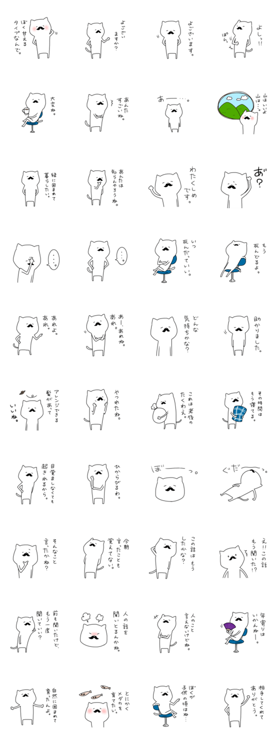 周りのおじいちゃん達をモデルにしたネコスタンプ