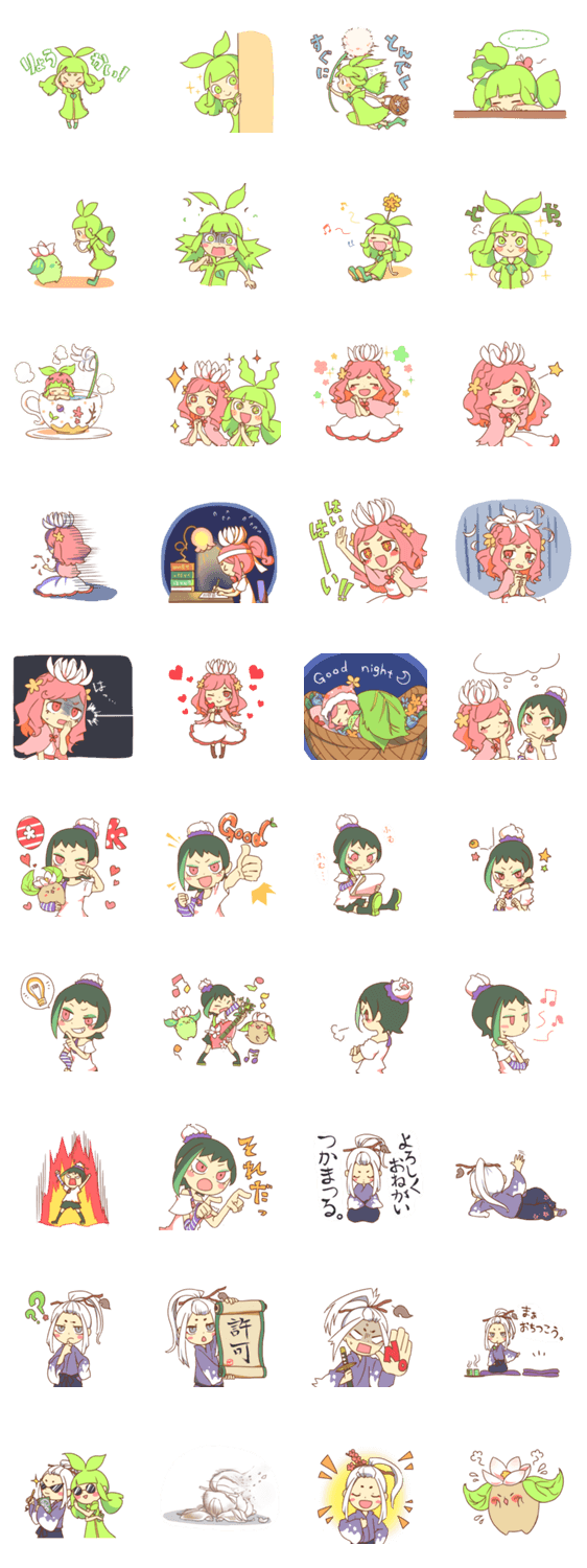 いつも元気な「しんめ」、ふわふわ可愛い「はなみ」、ちょっと強気な「つぼみ」、真面目な「かれき」。 小さな4人組が繰り広げる、ほのぼのとしたスタンプです。
