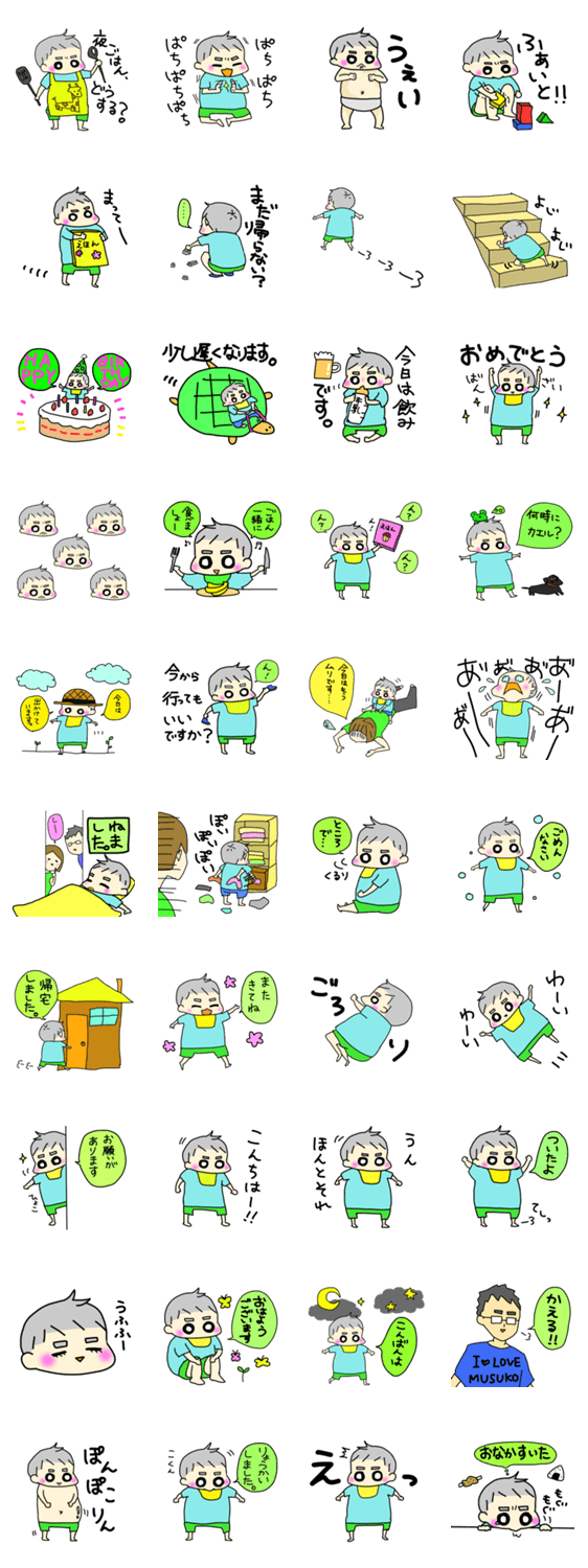 1歳頃の息子バージョン。歩いたり、覚えたことをイラストにしました。