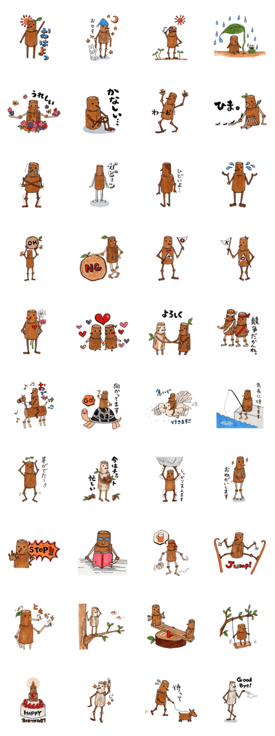 森からお届けするスタンプ。小枝のモリノ君がメッセージとともに癒しも運んでくれます。