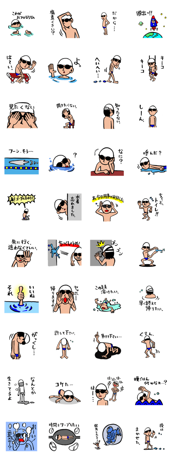 ネガティブスイマー…2 (水泳) -LINEスタンプマニア