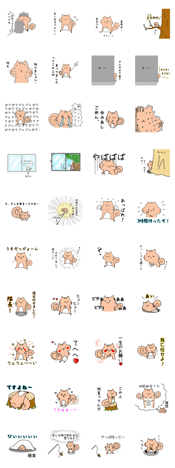 お調子者ですが、とてつもなくビビりな、りすのスタンプです!