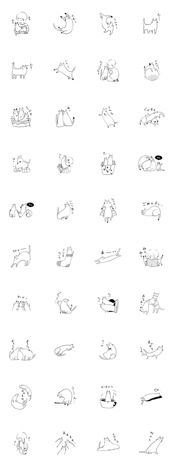 ゆるい日常に使える、ゆるい猫と僕のスタンプです。
