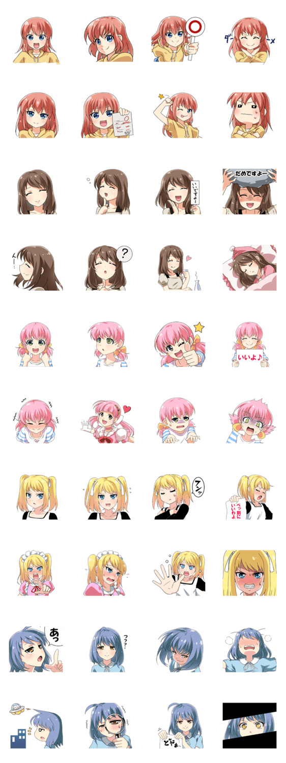 スタンプ説明 5人の個性あるキャラの表情・反応スタンプです。