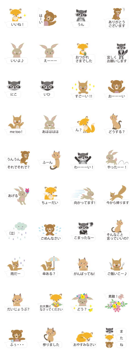 癒し系の動物たちの吹き出しスタンプです。 大きめの文字で読みやすくしました。