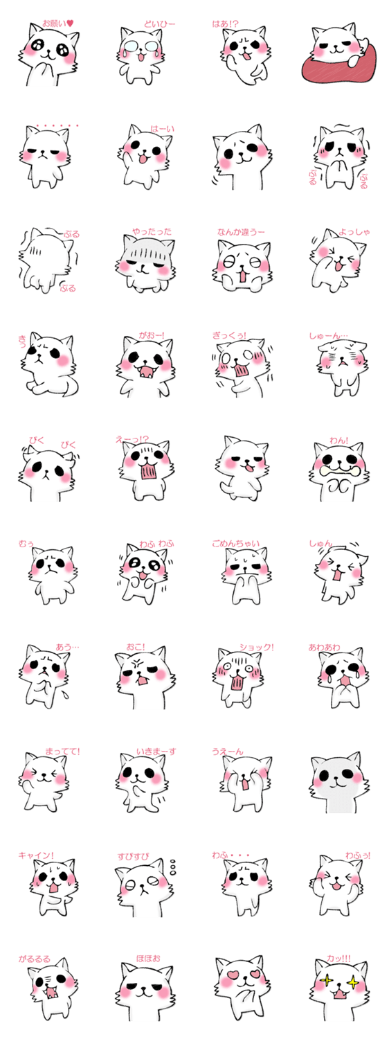 白ネコのあいうえお・・・ってるスタンプ