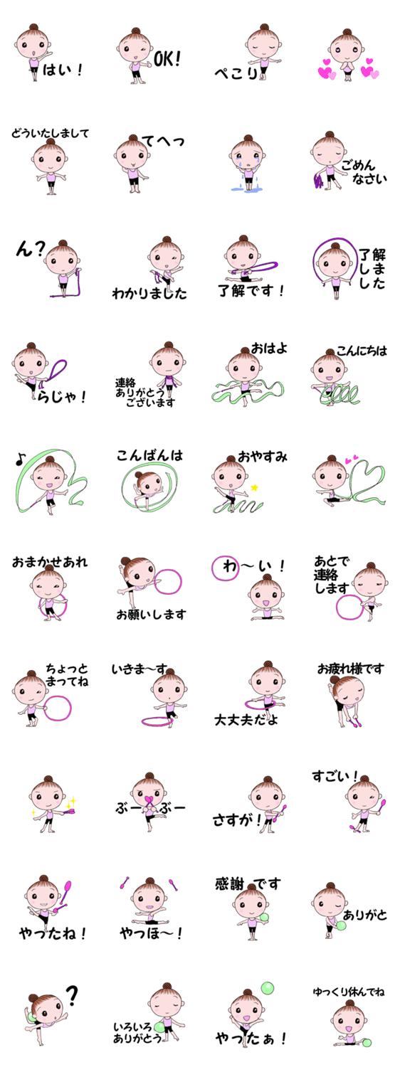 スタンプ説明 新体操の練習を頑張ってる女の子のスタンプです。