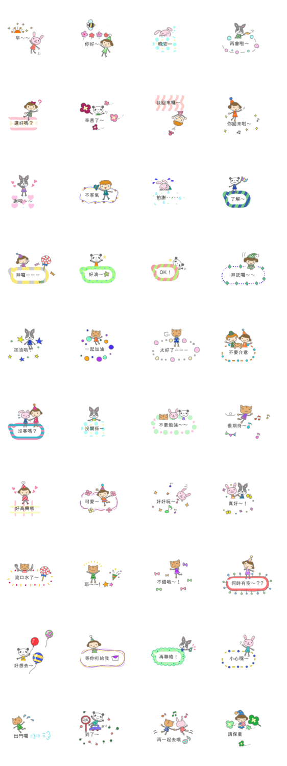 かわいい人形と模様の吹き出し(台湾Ver.) -LINEスタンプマニア