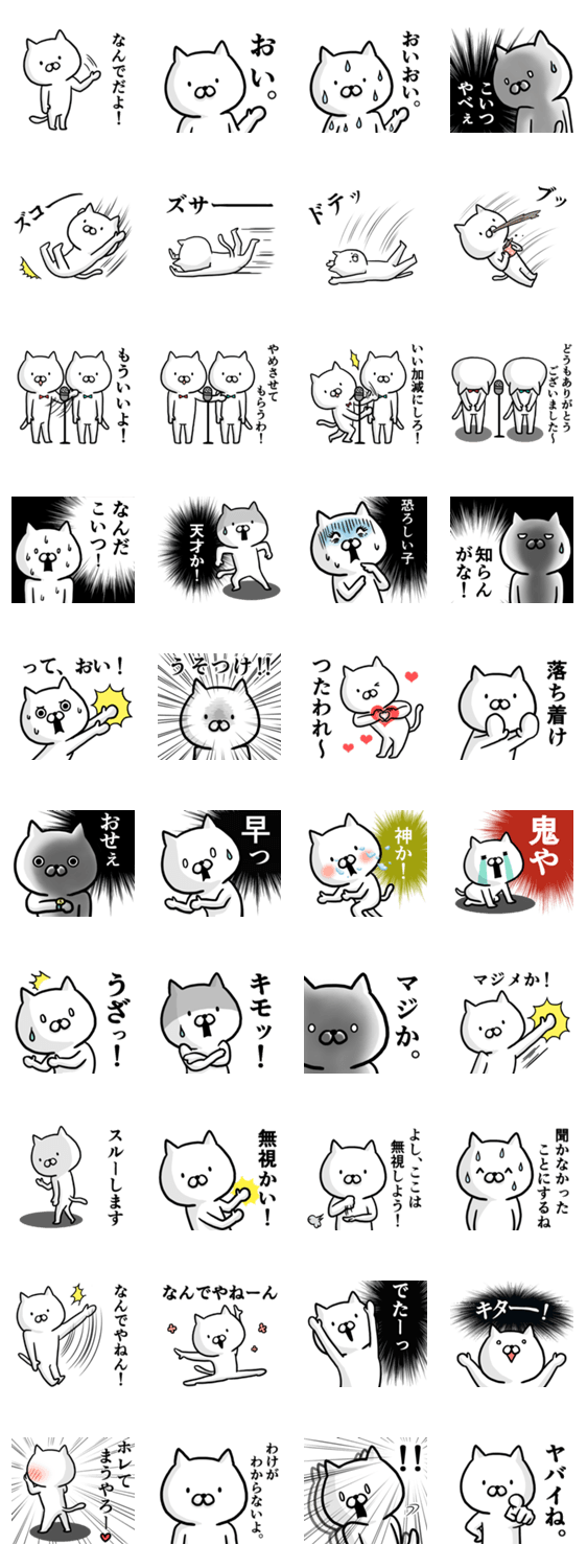 キュートでシュールなお猫さんが、優しく激しくつっこみます。時々毒舌、時々関西弁。友達同士や恋人、家族でも使える、会話上手なスタンプです。リアクション上手だよ!