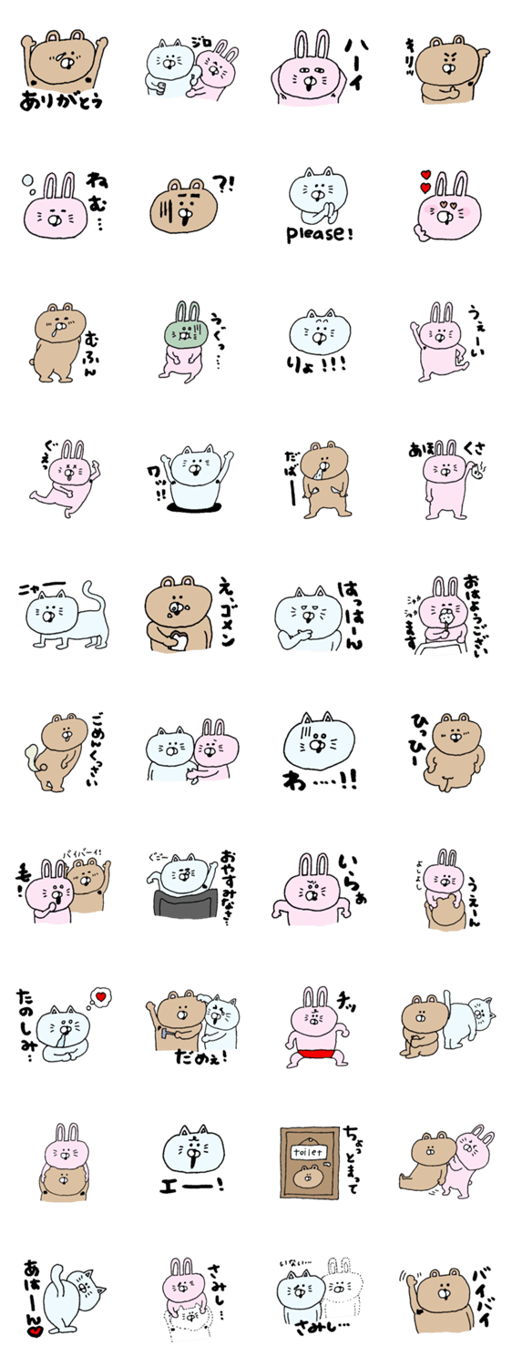 かわいいねこ、うさぎ、くまさん。あぁっ…腕あげたらあかん…