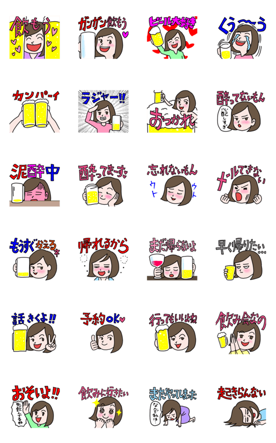 お酒大好きな女子の皆さん こんな動くスタンプはどうですか?