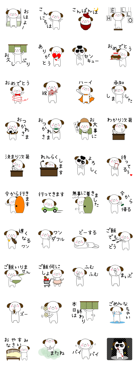 犬のWANTANの使いやすい言葉を集めたスタンプです。