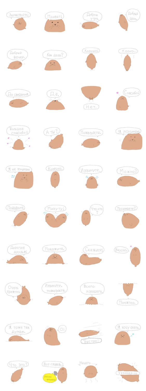 | スタンプ説明 | バイカルアザラシが日常会話で使えるロシア語を話します。 |