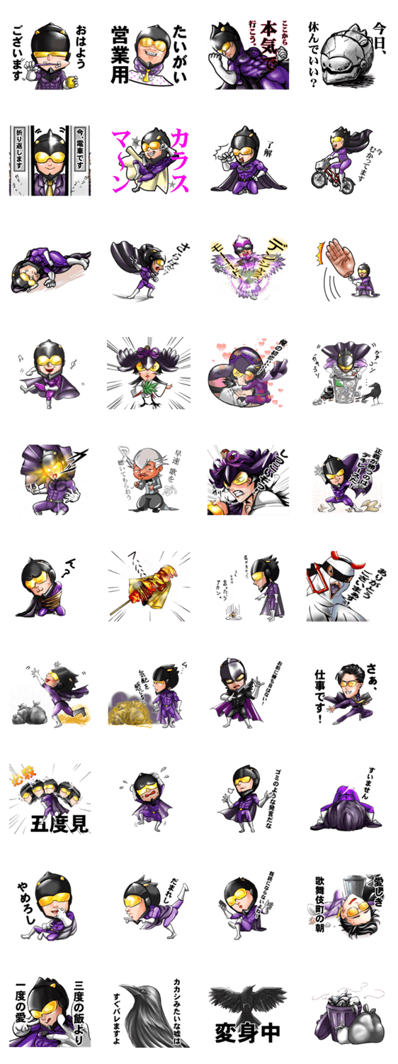 ほとんどヒーローたまにサラリーマン!お馬鹿で頼れるカラスマンのスタンプが登場!
