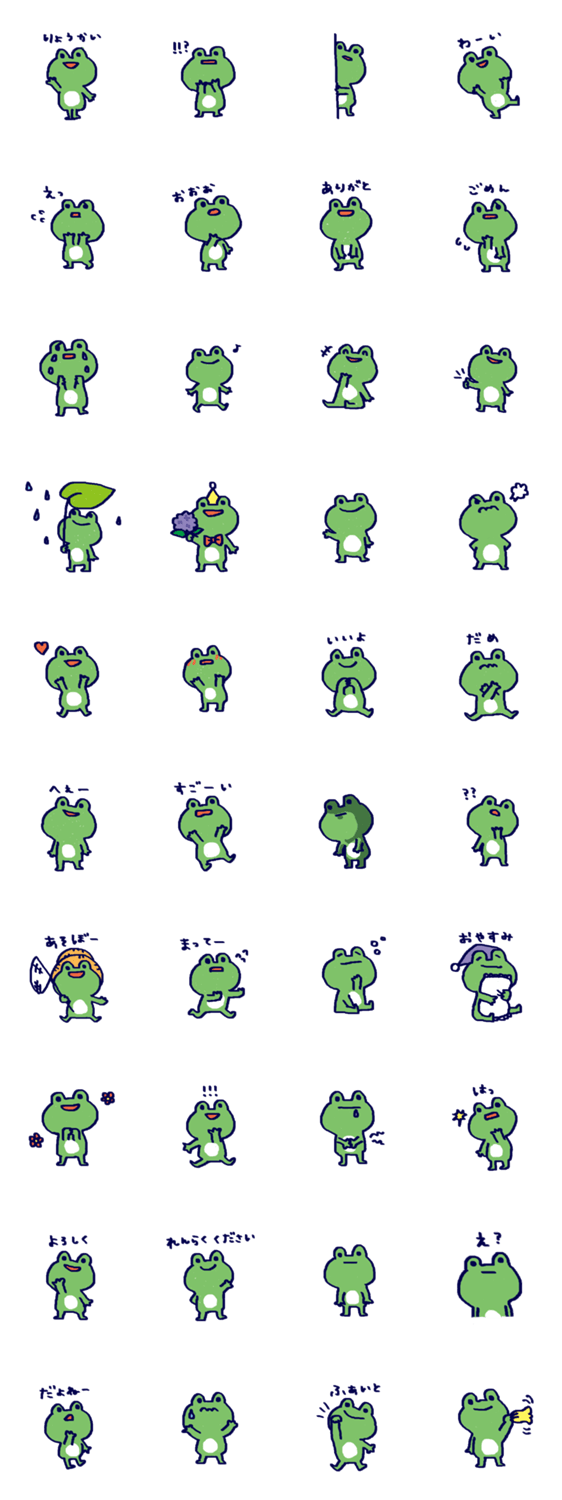 ゆるいかえるのスタンプです。おとなしめに作ってあるので、大人の方でも使いやすいと思います。