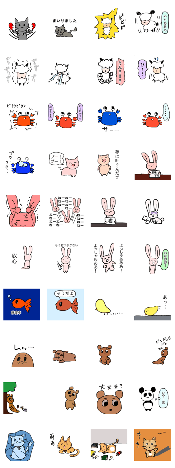スタンプ いろいろ 動物 たち ふつう まぶた くま カニ うさ ぎく ネコ
