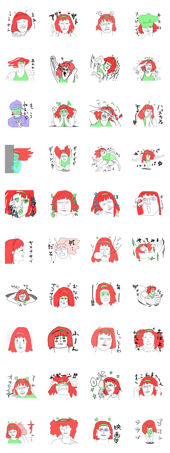 カチューシャした可愛らしいおばさん『カチューシャおばさん』のシュールなスタンプ☆ゆる〜くお使い頂けます☆
