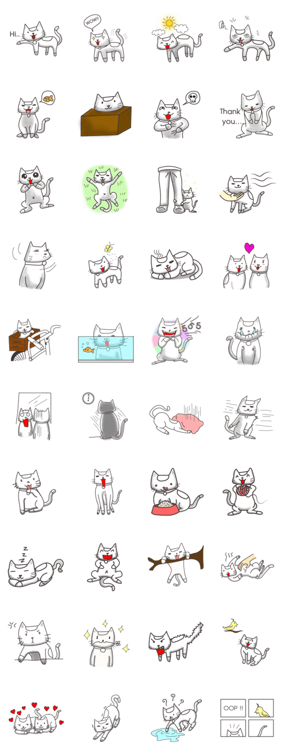 白ネコのあいうえお・・・ってるスタンプ