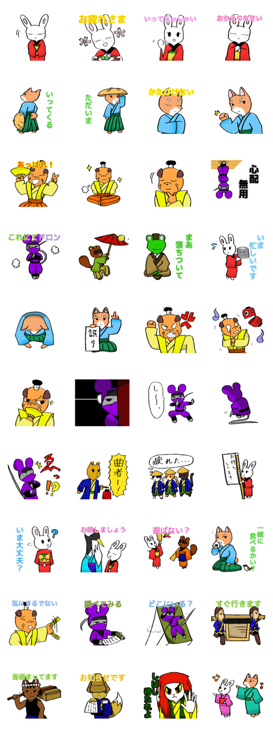 着物に身をつつんだ動物たちのスタンプです。家族や友達との会話にどうぞ。
