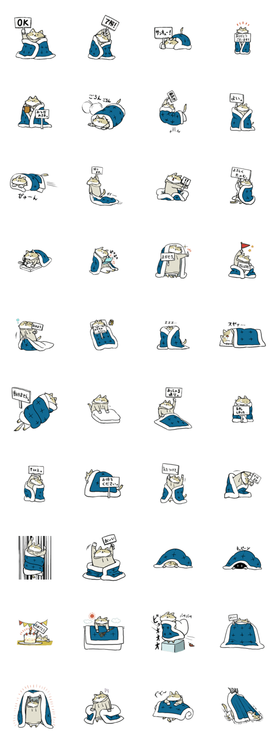 | スタンプ説明 | 布団を愛するぐーたらねこのスタンプです。布団に包まったまま日常を過ごしています。 |