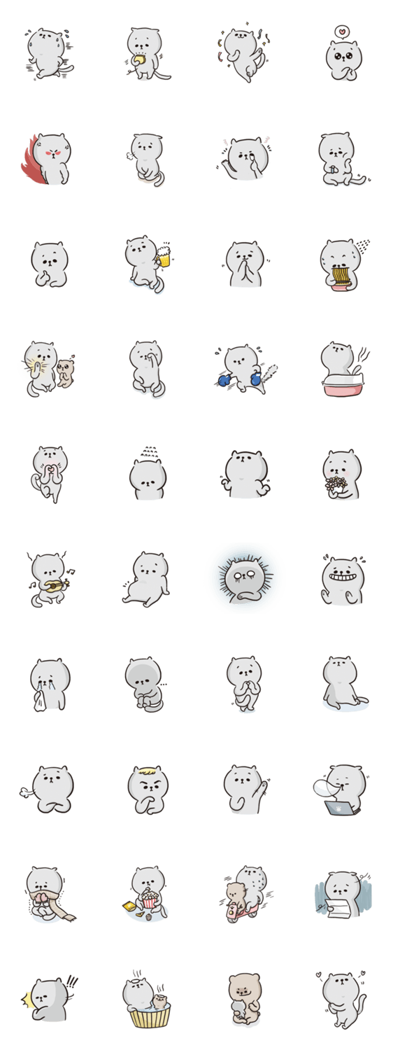 白ネコのあいうえお・・・ってるスタンプ