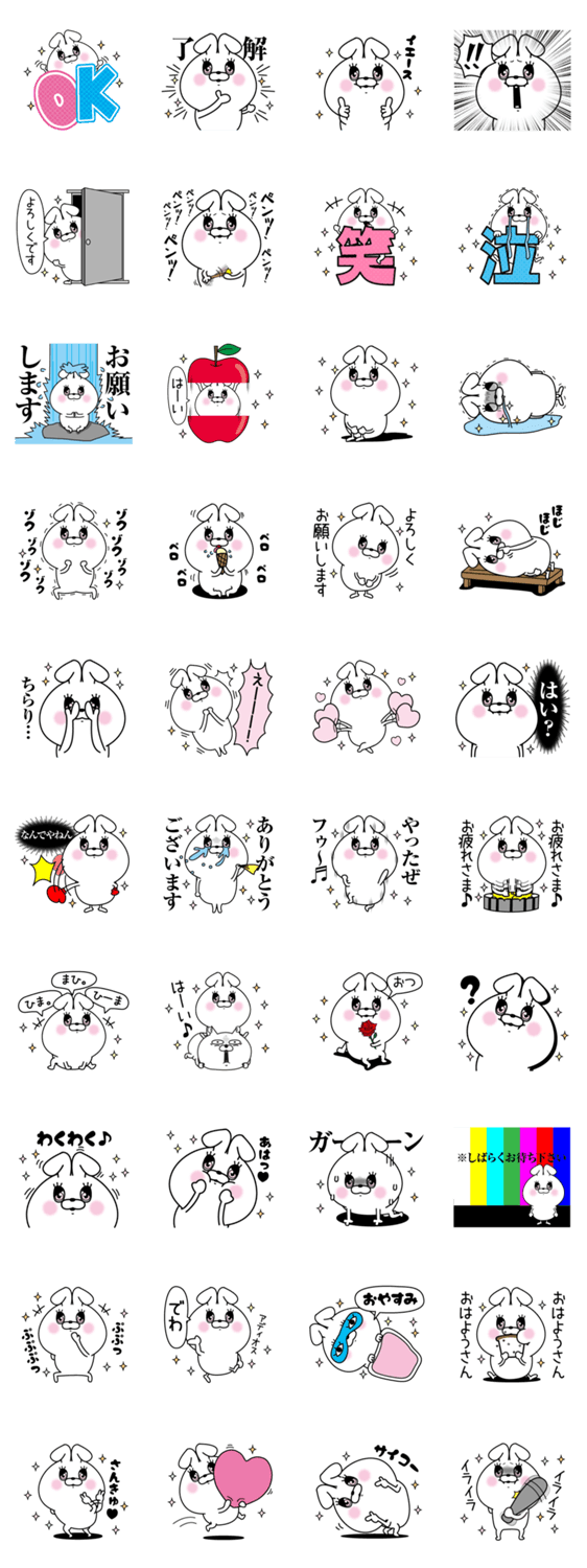 日常のトークで使いそうなうさぎさん。常にキラキラしてるので前向きで好印象なスタンプです。
