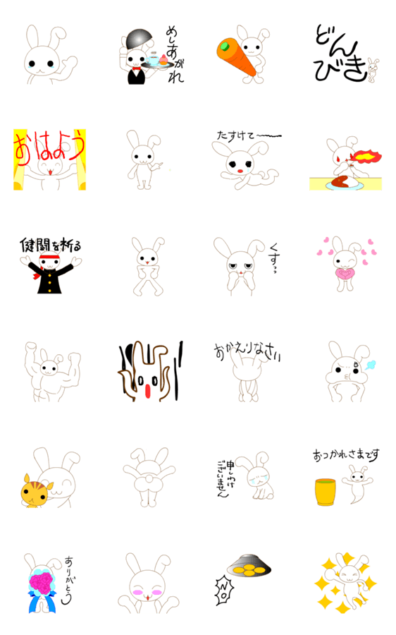 へんてこウサギだけど実はむちゃむちゃマッチョだったり、UFOに連れて行かれたり、泣いてたり、ハッピーだったりします。