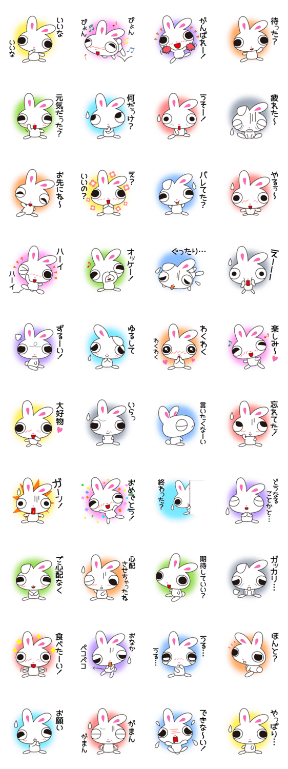 | スタンプ説明 | ウサギのうささは大きな目がチャームポイント。可愛いうささのスタンプ第2弾です。 |