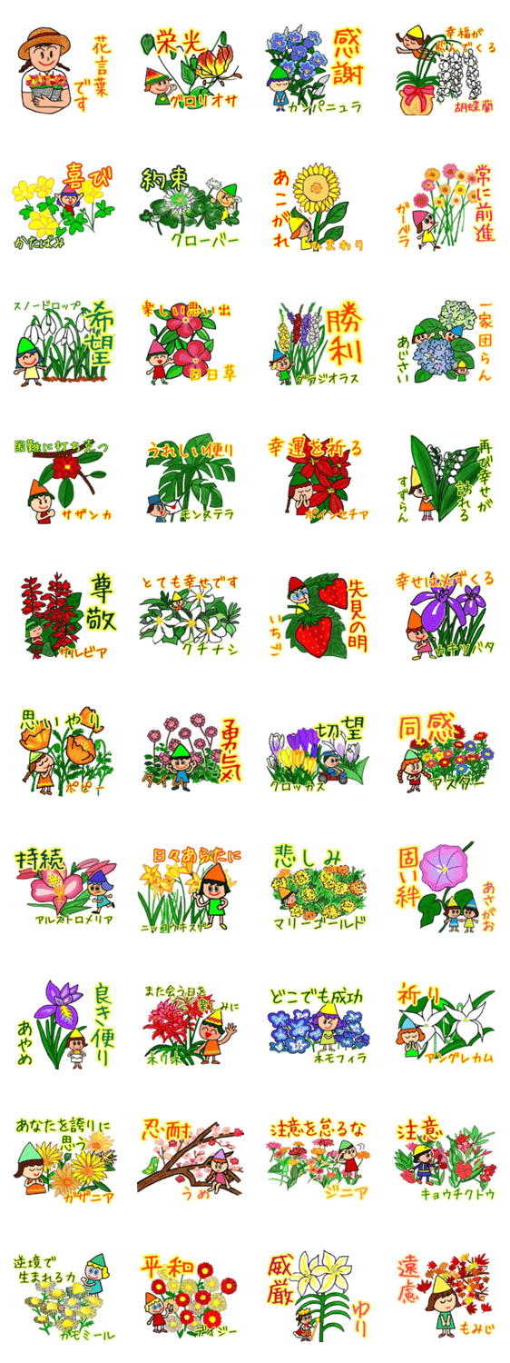 花言葉のスタンプです。花言葉で気持ちを伝えるのに使ってください。
