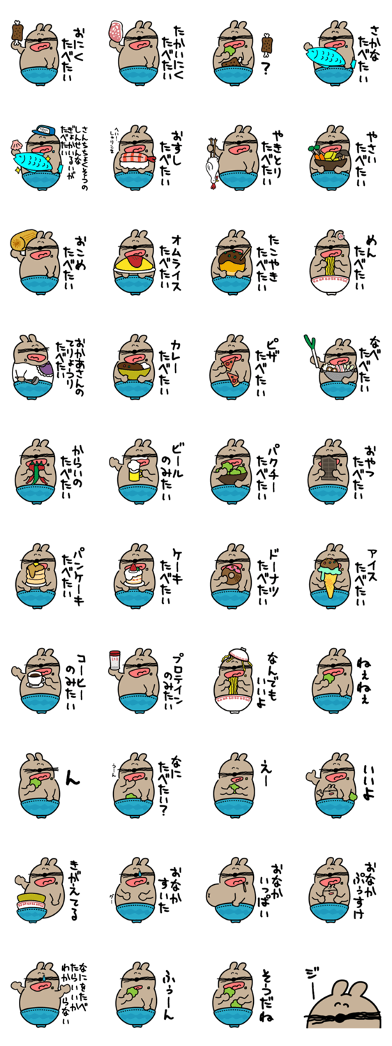 スタンプ説明 ちょっぴりたべすぎなどんぶりねずみさんのスタンプ