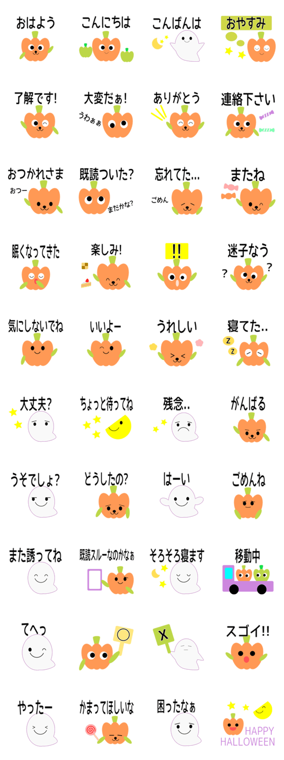 スタンプ説明文 かぼちゃさんたちの日常生活スタンプです。ハロウィンを意識して作りました。