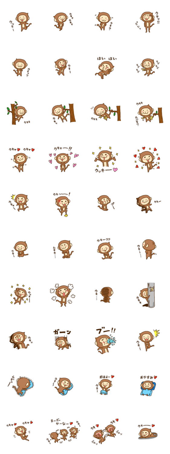 おさるのウッキーだよ。 ウッキーを使ってメッセージを盛り上げてね! ウッキー!