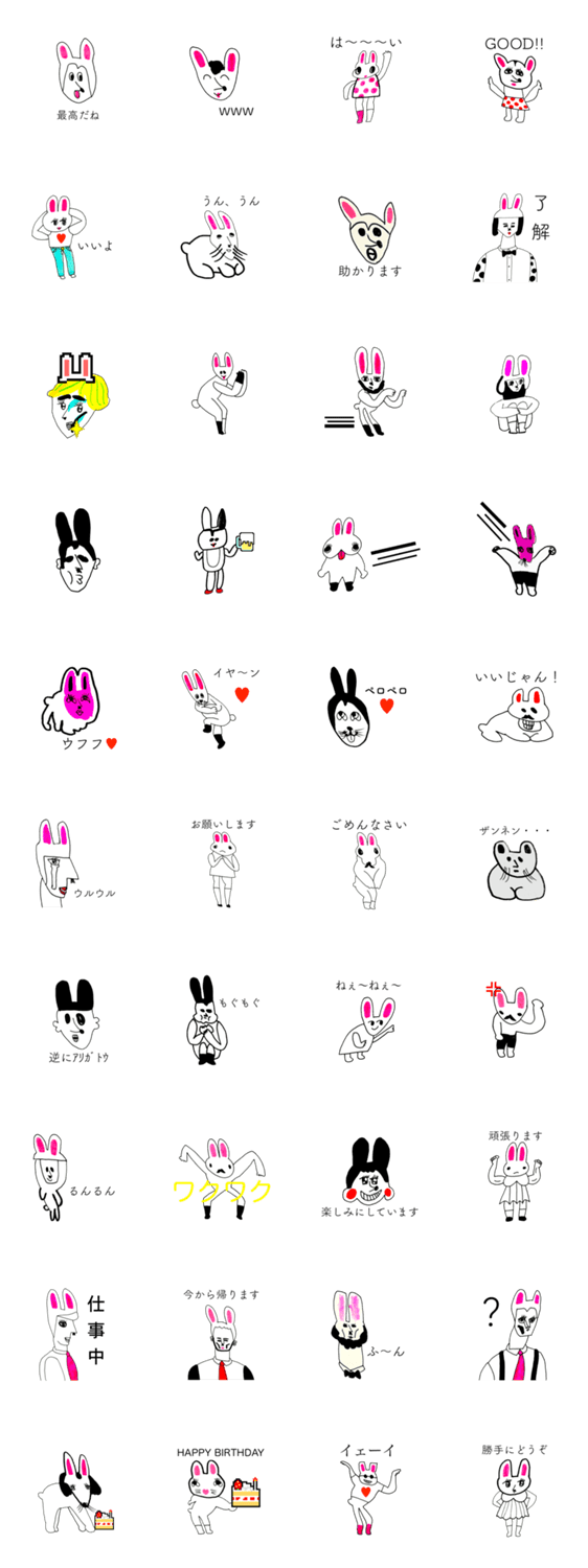 うさぎさんのラクガキを集めたスタンプです。バニーちゃん的なものもあります。