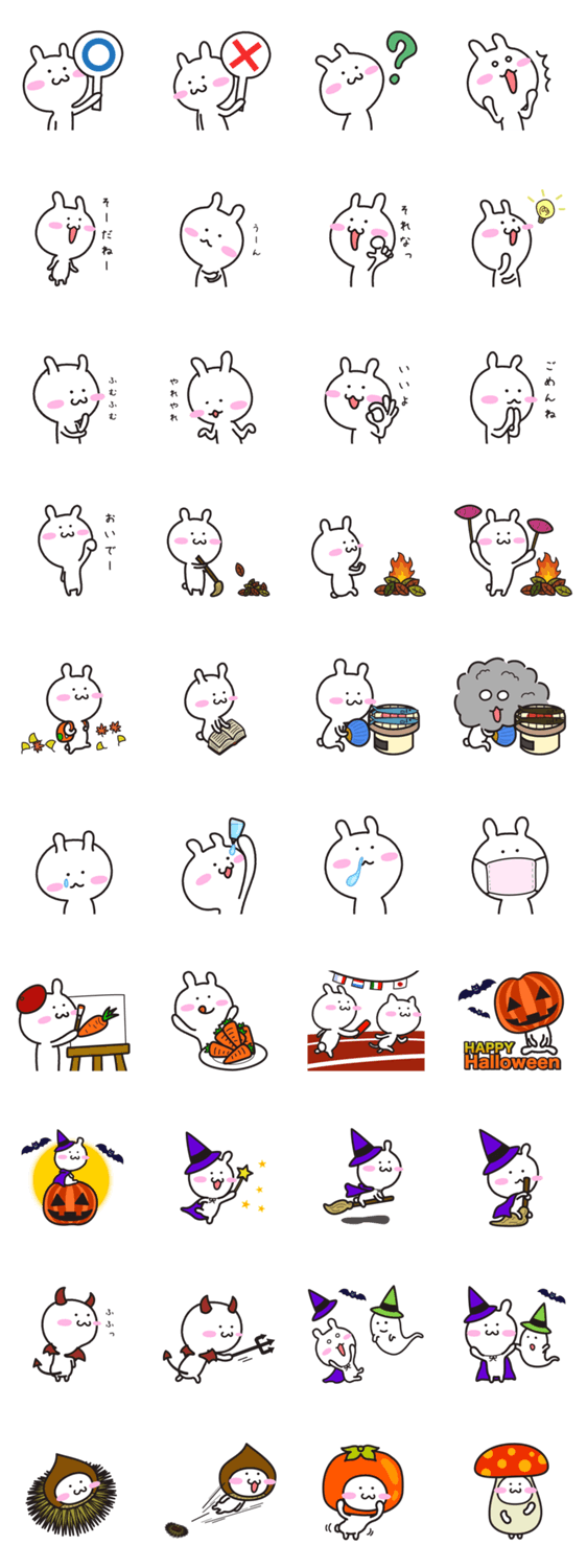 兎(うさぎ)の"うさぼの"は今日もマイペース。シュールでゆるかわ"ほのぼのウサギ"の緩いスタンプ。ハロウィンなど10月11月バージョン。シリーズあわせてどうぞ