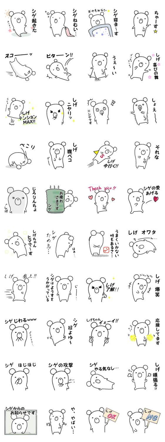 全国のしげたさん(重田、繁田、茂田)しげもりさん(重森、重盛、茂森)しげおかさん、シゲルさん、シゲアキさん、などなどあだ名が『シゲ』の人用スタンプです。