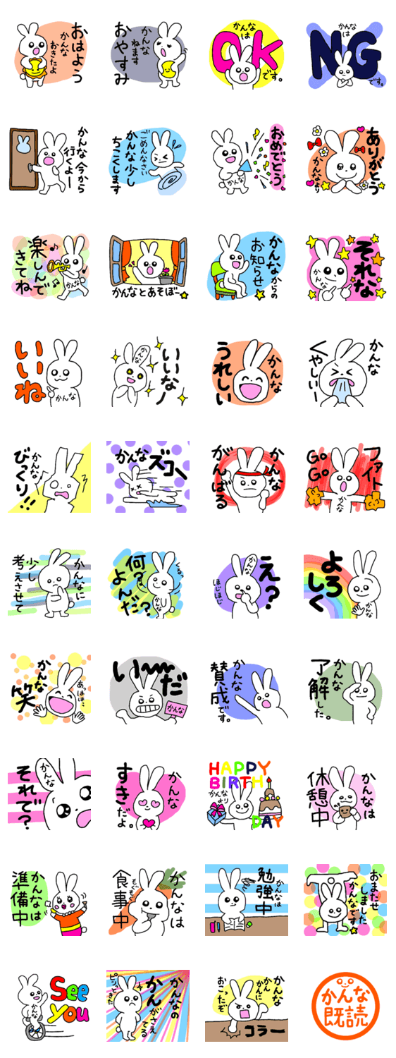 名前がかんなの人が使える専用のスタンプです。かんなさんのプレゼントにもおすすめです。かんな、カンナ、栞奈、環奈、神奈など