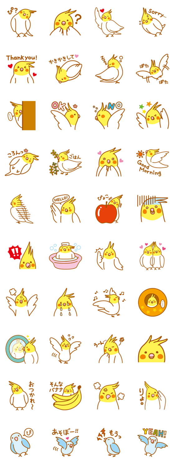 ペットのオカメインコの日常をスタンプにしてみました。おまけでマメルリハもいるよ。