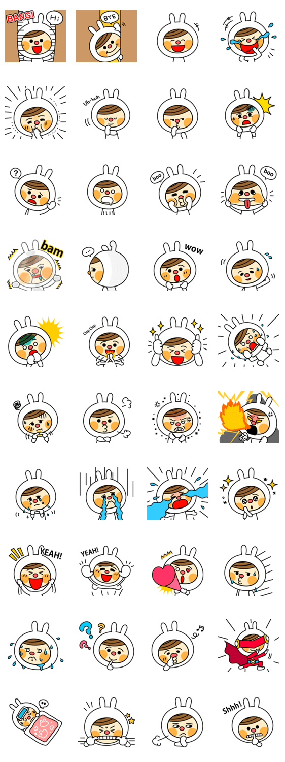 どんな場面でも対応できるうさぎの着ぐるみを着た「ウサぐるみ」の表情スタンプ