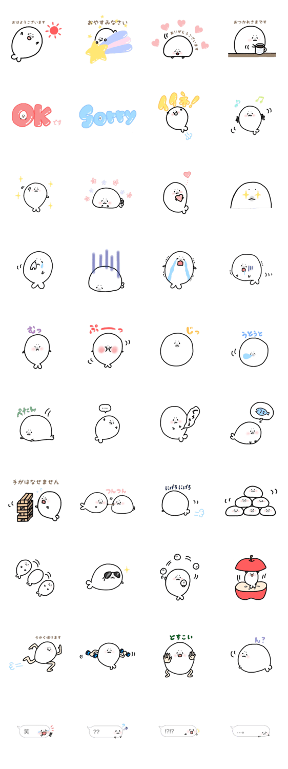白ネコのあいうえお・・・ってるスタンプ