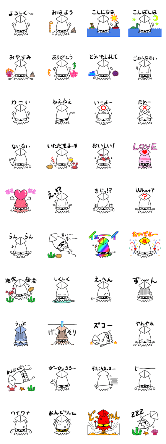 イカの墨之進(すみのしん)といいます。 白黒でクール、時々カラフルでエキサイティングな墨之進が、あなたの会話のお供をさせて頂きます。