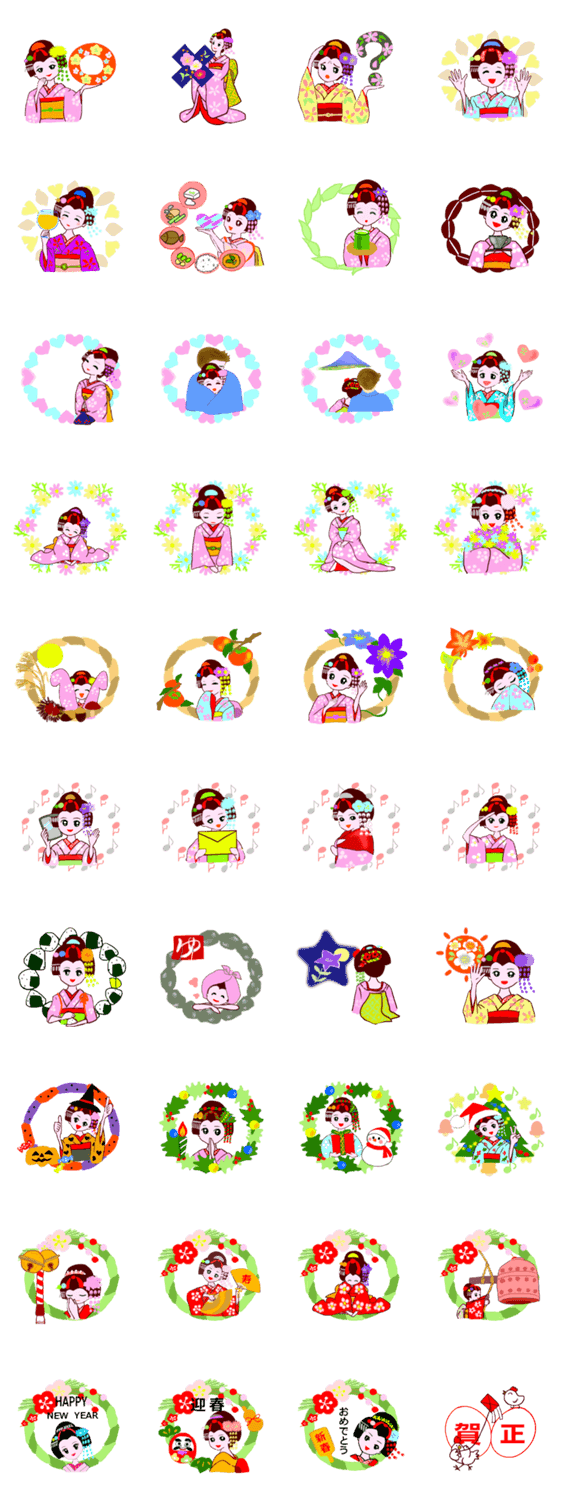 カラフル着物美人 秋~お正月編 -LINEスタンプマニア