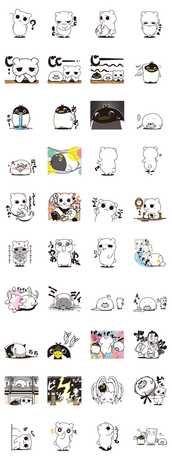 北国に住むシロクマとアザラシとペンギンのスタンプです。